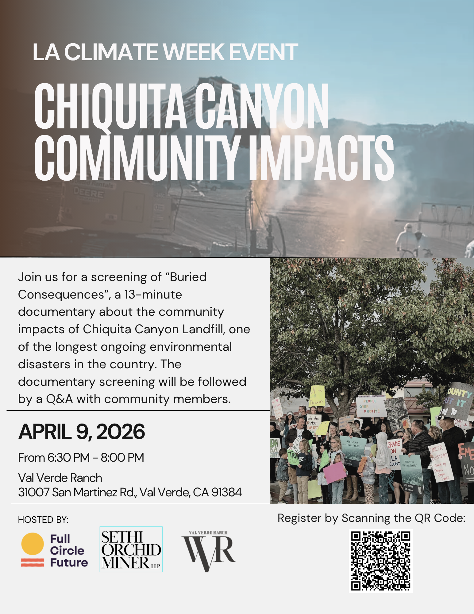 Join us for a screening of “Buried Consequences”, a 13-minute documentary about the community impacts of Chiquita Canyon Landfill, one of the longest ongoing environmental disasters in the country. The documentary screening will be followed by a Q&A with community members.